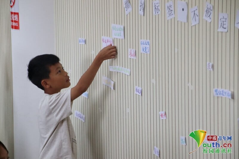 图为小朋友正在写下自己的情绪清单。胡陈龙 供图