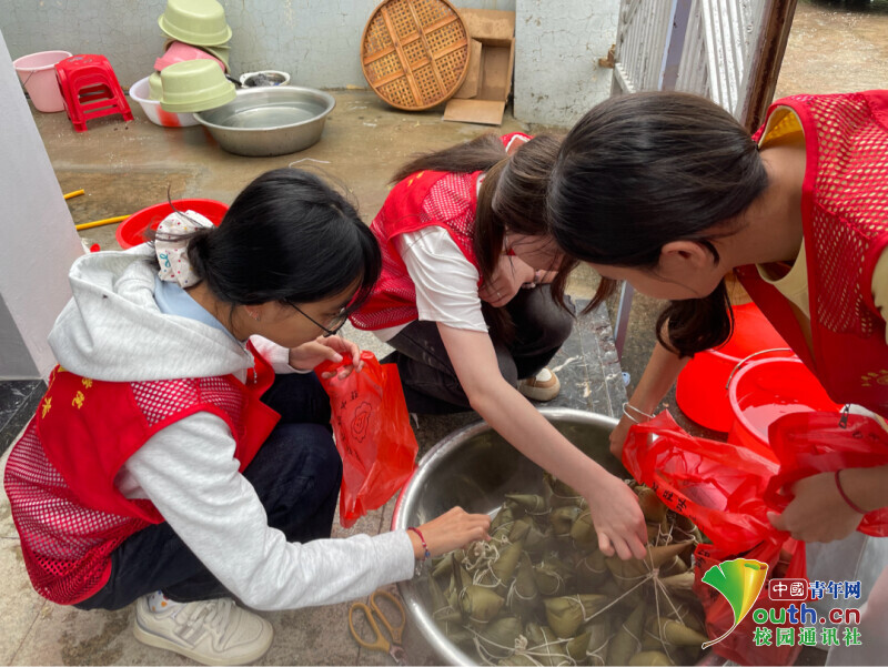 图为志愿者将粽子捆绑好。施雯颖 供图