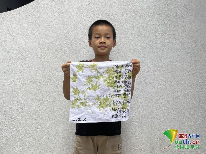 图为小朋友展示自己的植物拓染作品。黄嘉瑶 供图