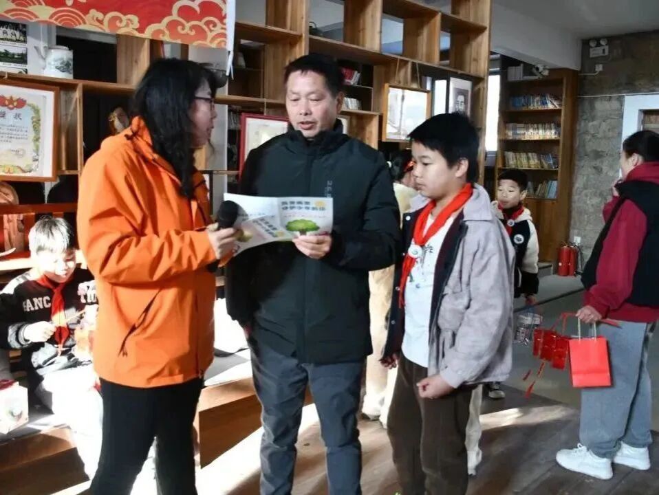 在“寻脉启新”环节,讲解员带领学生与家长参观家风家训馆,学习传统智慧,从传统文化中汲取精神养分,树立正确的价值观念。活动现场还通过互动方式,宣传未成年人保护知识和老年人交通安全出行知识,引导孩子们将“平安秘籍”带回家,真正实现“小手拉大手”的家庭共育与守护。