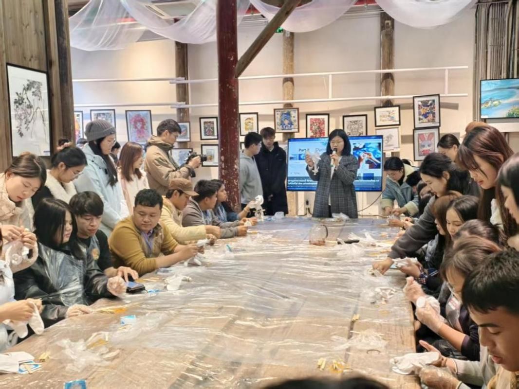 图为中泰培训项目学员参与成果展的非遗DIY体验环节