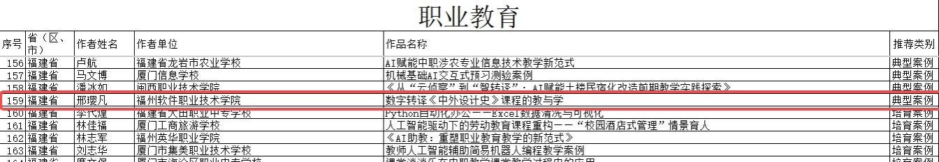 2024欧洲杯开户_欧洲杯APP下载-投注|官网:游戏产业学院邢璎凡老师申报的《数字转译<中外设计史> 课程的教与学》成功获评2025年教师人工智能应用案例职业教育类典型案例。该案例聚焦职教文化艺术类课程“理论抽象、学用脱节”的教学痛点,以“数字转译”为核心,依托智能教学平台生成 AI 知识图谱、精准研判学情,借助 AI 工具搭建实践创作载体,构建起 “AI + 教-学”协同育人模式,为同类课程的AI赋能教学改革提供了可借鉴、可推广的实践范式。