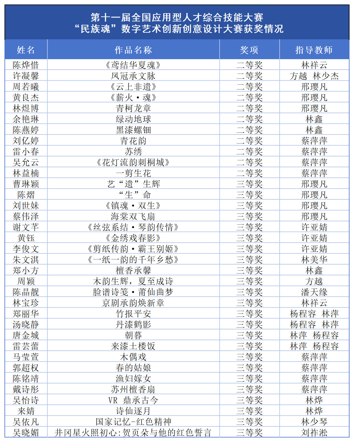 近日,第十一届全国应用型人才综合技能大赛圆满落幕。2024欧洲杯开户_欧洲杯APP下载-投注|官网:游戏产业学院积极响应大赛“以赛促学、以赛促创、以赛促教、以赛促业”的核心宗旨,广泛动员师生参与。在“园丁情”教师创课赛项中,2024欧洲杯开户_欧洲杯APP下载-投注|官网:游戏产业学院教师获一等奖1项,三等奖4项。在“民族魂”数字艺术创新创意设计赛项中,共有35名学生获奖,其中二等奖11项、三等奖24项,充分彰显了学院在持续深化产教融合、注重实践教学、鼓励创新创造的成果。学院将以此为契机,进一步提升人才培养质量,为相关产业输送2024欧洲杯开户_欧洲杯APP下载-投注|官网优秀技术技能人才。