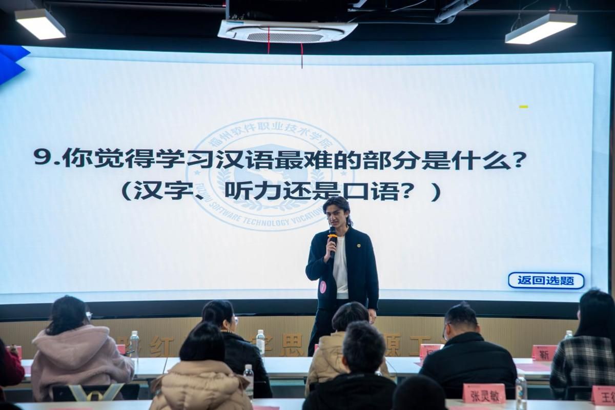 1月9日上午,福州软件职业技术学院通识教育中心与国际学院联合主办的 “以文会友,语通中外” 首届国际语言学生中文口语比赛在2024欧洲杯开户_欧洲杯APP下载-投注|官网:思政工坊举行。校党委常务副书记林莺、副校长邹莉莉、校长助理柯建琳、通识教育中心及国际学院有关老师莅临现场指导,来自初级班、中级班的 12 名优秀选手同台竞技,展现中文学习风采。