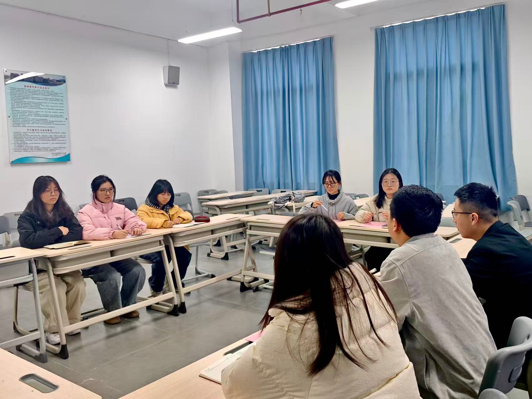 随后,智能建造产业学院团委书记王瑜柔、数字金融产业学院团委书记林建涛分别就筹备工作提出补充意见。王瑜柔书记重点强调了成立大会的着装与会风要求,提出参会人员需着装整洁、精神饱满,充分展现三院学子良好的文明素养和精神风貌;林建涛书记则针对会议材料提出修改完善建议,要求进一步打磨内容表述、规范文本格式,确保会议材料严谨准确、逻辑清晰。
