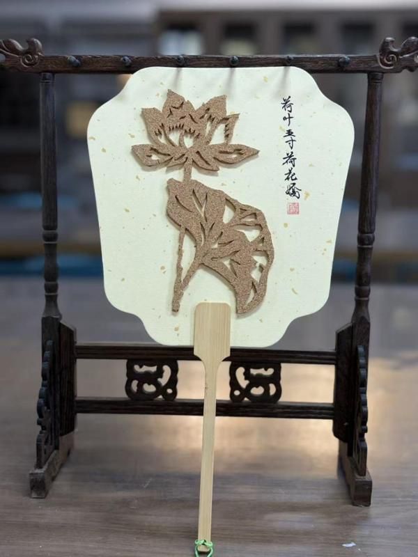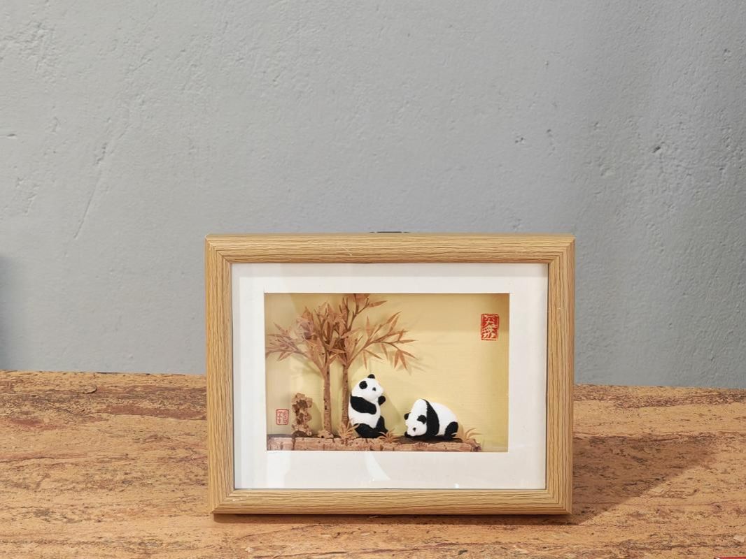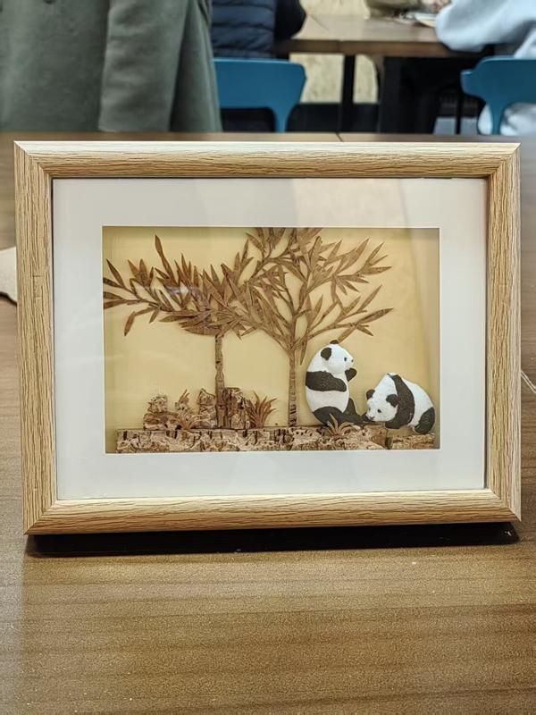 课程秉持“非遗走进现代生活”理念,注重工匠精神与创新意识双向培养。在“熊猫竹石”——《竹报平安》创作中,学生完成从设计、雕刻到拼贴、装裱的全过程,并在传统技艺基础上展开创新。本次线上展览除呈现《竹报平安》系列外,还展出软木画工艺制作的发夹、手链、扇子、日历本等文创作品,将传统雕刻融入日常物件,展现了同学们将文化传承融入当代生活的设计思维与实践能力。