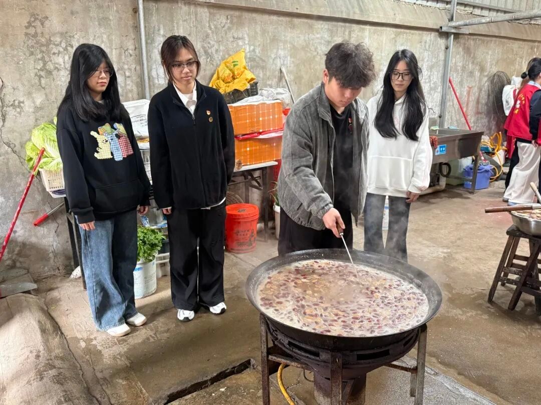 活动伊始,镇村志愿者与学生党员早早忙碌起来,分工协作淘米备料、精心熬煮拗九粥,同时细致布置活动场地、有序引导老人入座,将贴心服务融入每个细节。学生党员主持登台介绍拗九节“孝顺节”“送穷节”的传统渊源,向现场老人致以节日问候,宣布活动正式开启,让老人们在温馨氛围中感受闽都民俗的独特魅力。