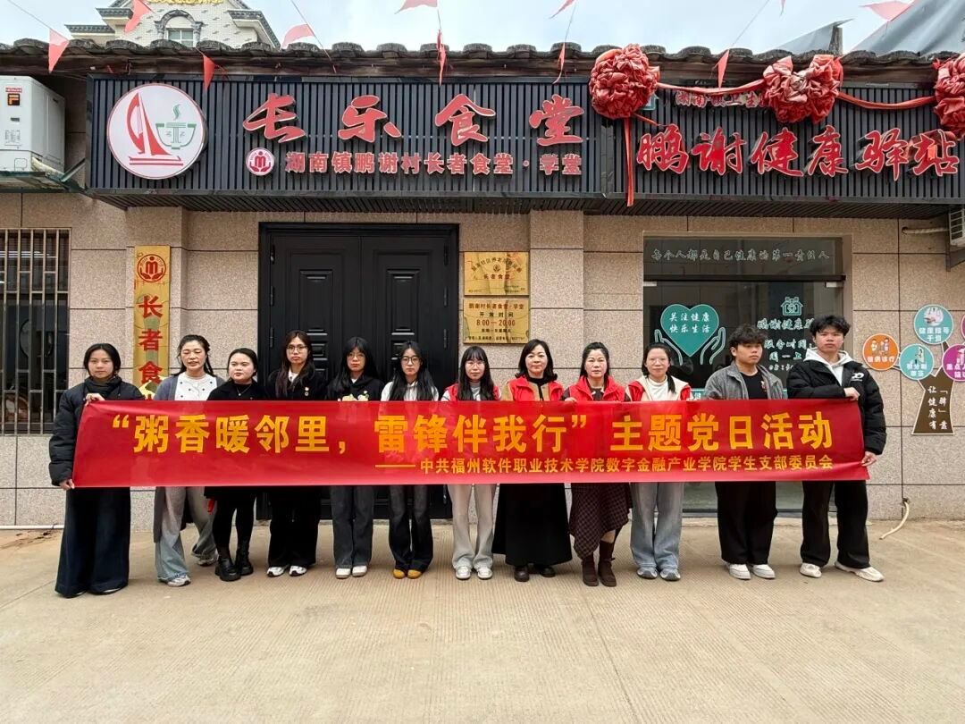 为传承闽都民俗、弘扬敬老爱老美德,引导青年在孝亲实践中彰显青春担当。3月17日,福州软件职业技术学院数字金融产业学院学生党支部携手湖南镇新时代文明实践所、湖南镇鹏谢村新时代文明实践站在鹏谢村长者食堂开展“粥香暖邻里,雷锋伴我行”主题党日活动,让传统节日温情与暖意相伴老人左右。