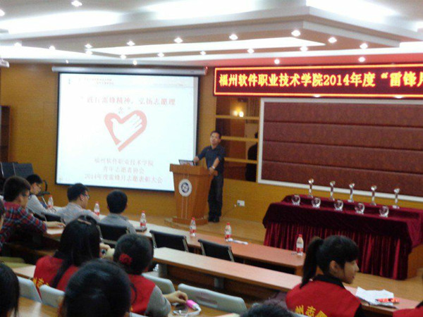 为期一个多月50余个团支部参与的“践行雷锋精神  弘扬志愿理念”学雷锋志愿服务活动于2014417日在报告厅落下帷幕,出席本次颁奖的嘉宾有:党委秘书陈阵伟,团委副书记林艺勇、刘建华、林文挺老师以及各年级辅导员。