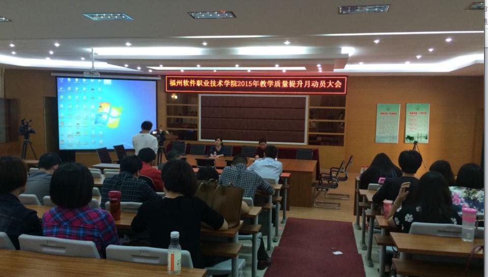 3月31日下午,教务处在报告厅召开2015年“教学质量提升月”活动动员大会。学院党委林新辉书记、洪志群副书记、院长助理王秋宏、教务处副处长林土水、各系副主任和各专业教师参加了会议,会议由林土水副处长主持。