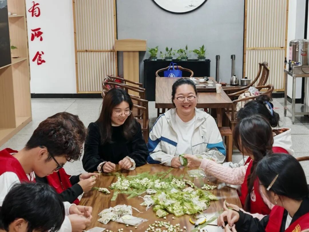重阳清晨,食堂内暖意与香气交织。项目党员志愿者与高校学生志愿者默契分工,共同为老人们赶制心意满满的节日礼物。学生们手眼配合,穿针引线的动作干脆利落,洁白的茉莉与彩线缠绕,转眼就变成了雅致的手环;项目党员志愿者们则耐心十足,一手托着布袋,一手捻起茉莉花缓缓填充,香囊的清香渐渐弥漫开来。