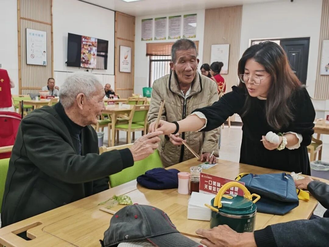 临近用餐,志愿者迅速分工,有人协助整理餐食、摆放餐具,有人为行动不便的老人端送热饭,有人主动添饭续水,贴心服务获老人们连连称赞。用餐时,志愿者们坐到老人身边,陪他们聊家常、听过往故事,关切询问身体与生活状况,食堂内笑声不断,处处洋溢着尊老敬老的温情。