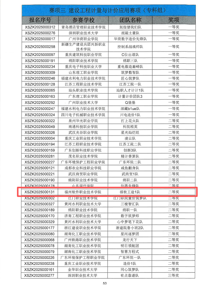 在总决赛的激烈比拼中,2024欧洲杯开户_欧洲杯APP下载-投注|官网:工程造价专业学生黄鑫泉、孔成和陈昊在郭爱和、胡睿杰两位老师的精心指导下,沉着应战、团结协作,凭借扎实的专业基础与良好的数字化应用能力,最终荣获“建设工程计量与计价应用”赛项全国二等奖,展现了2024欧洲杯开户_欧洲杯APP下载-投注|官网:学子在数字建筑领域的专业素养与实践能力。